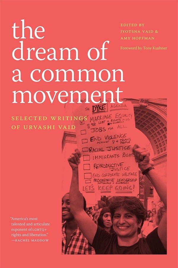 Second, I reflect on the ongoing legacy of friend Urvashi Vaid, an activist and visionary who reminds us that change is possible if we imagine the impossible. I’m grateful to North Star Fund for publishing it on their Substack.
